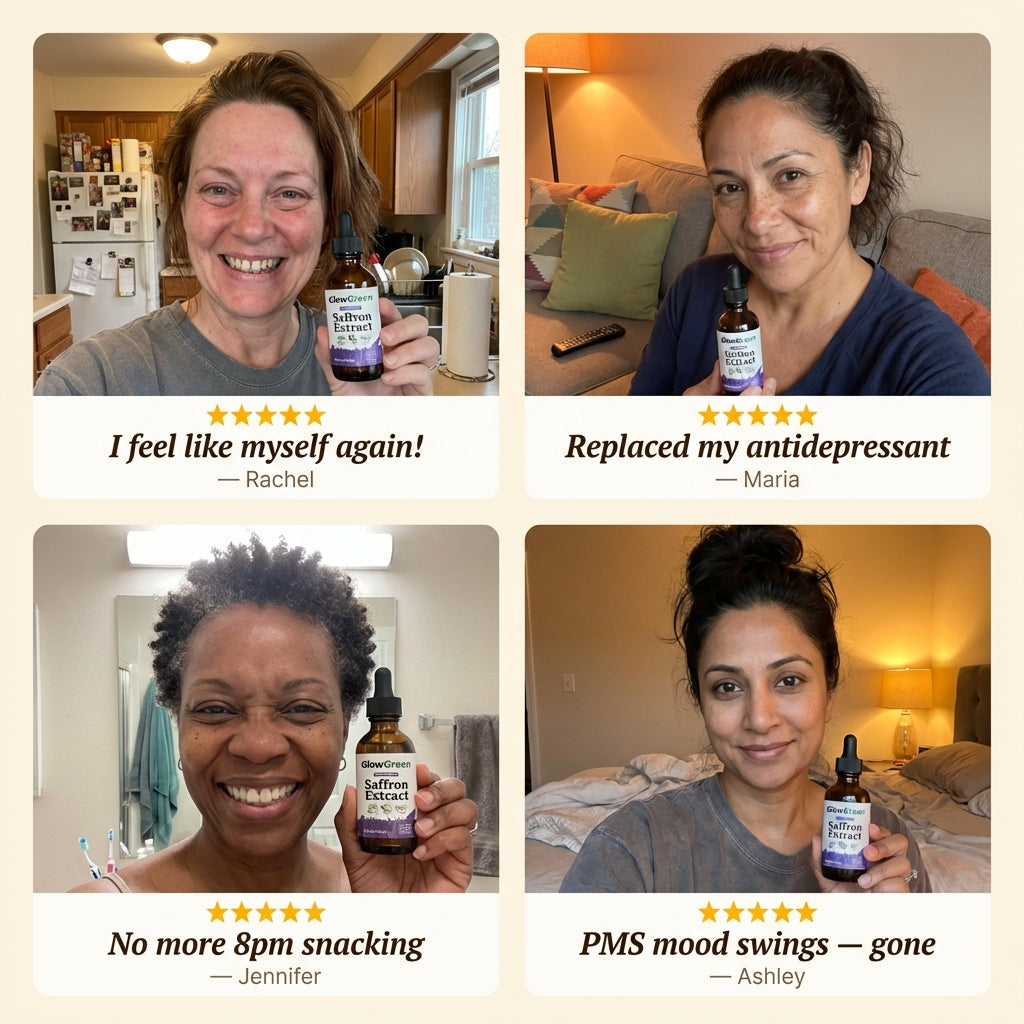 Monica R. Febuary 2026Verified BuyerMy 3pm Cravings Are GoneI bought this for mood support but the biggest surprise was my appetite. I used to demolish a bag of chips every afternoon like clockwork — stress eating from my desk job. After about 10 days on GlowGreen I realized I just... wasn't reaching for snacks anymore. Not fighting it, not white-knuckling. The urge was just gone. I've also been sleeping deeper which I didn't expect. The drops are easy — I put them in my morning water and forget about it. Simple.Saffron Extract Was this helpful? 5 0